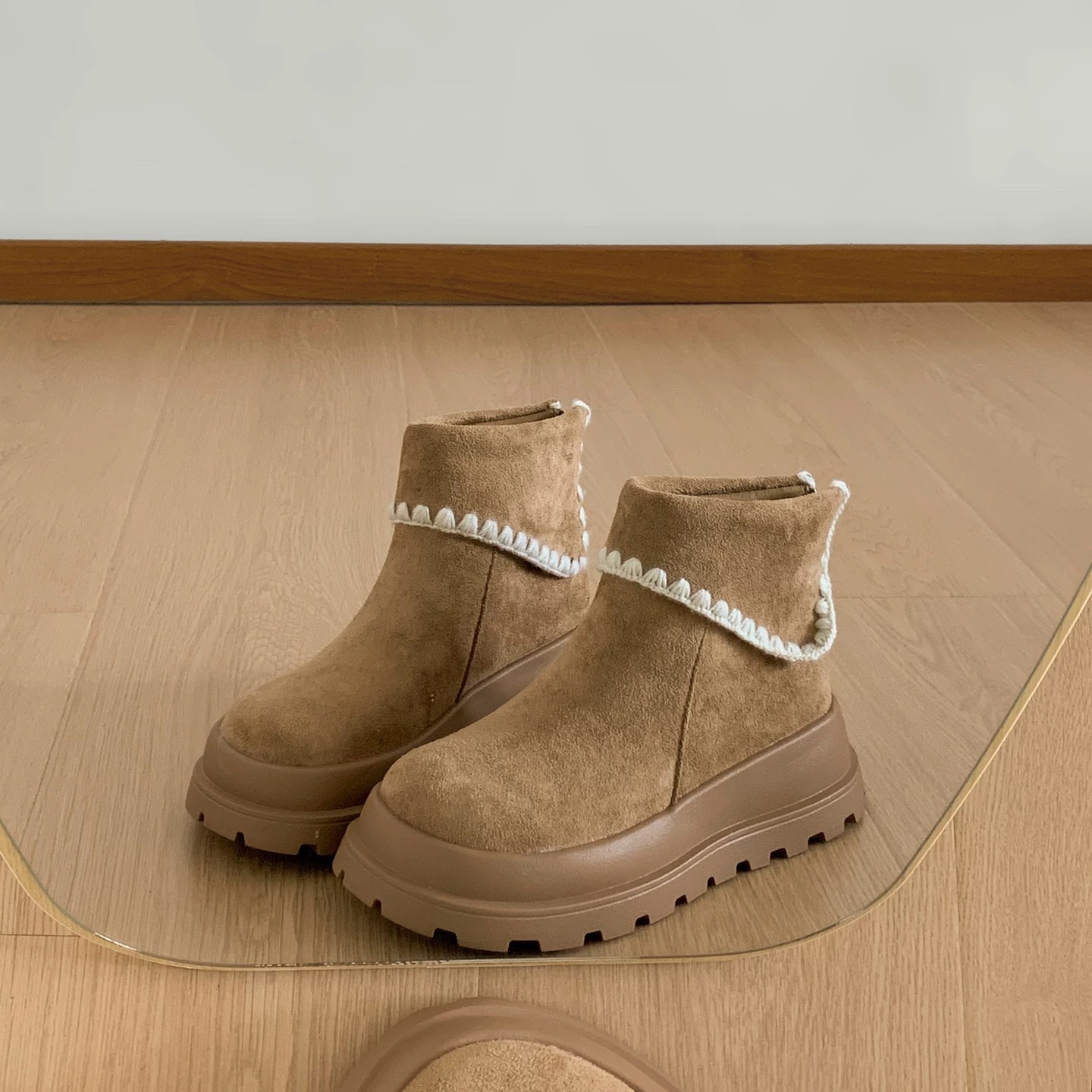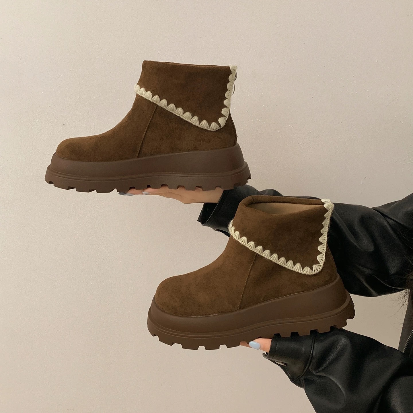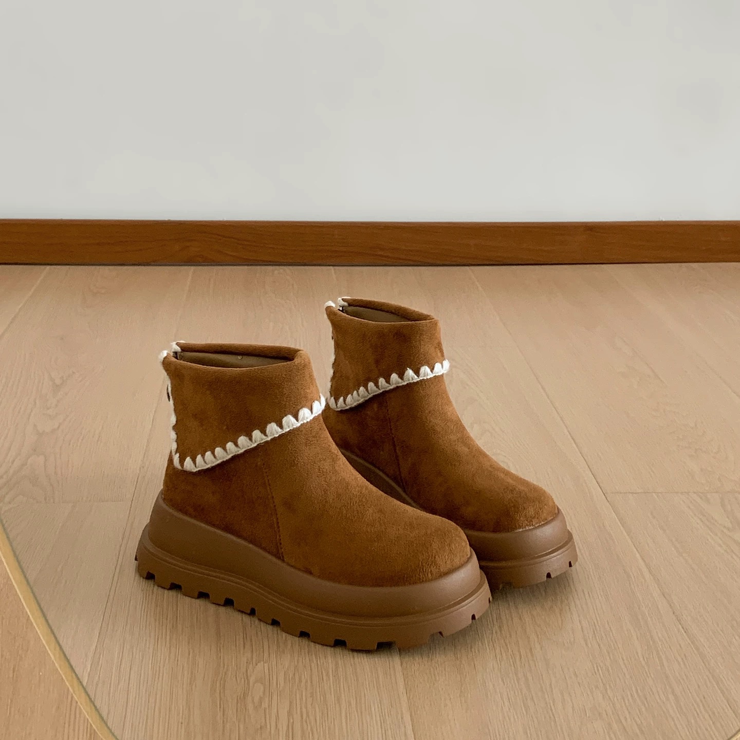 #新款 #厚底 #翻領 #絨面 #滾邊 #休閒 #日常
