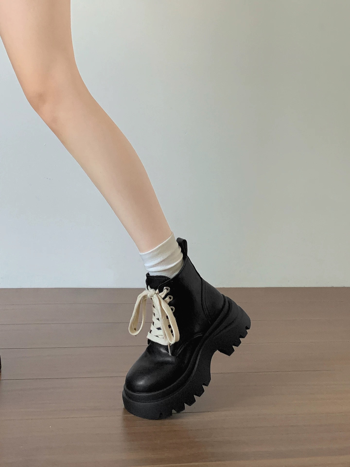 #新款 #厚底 #英倫風 #撞色 #休閒 #扁鞋帶 #日常