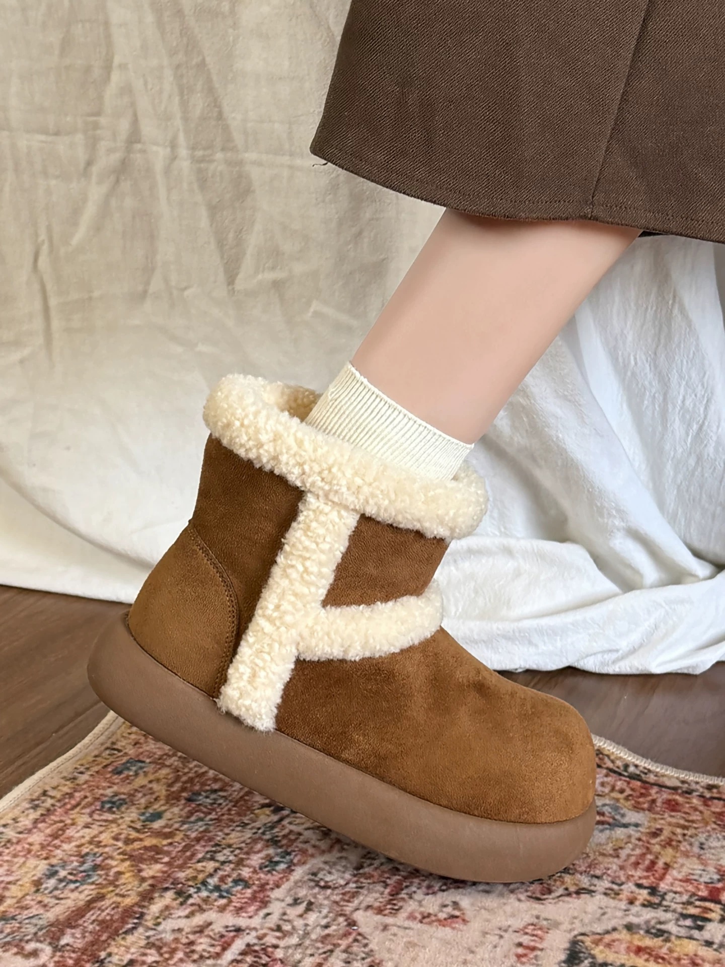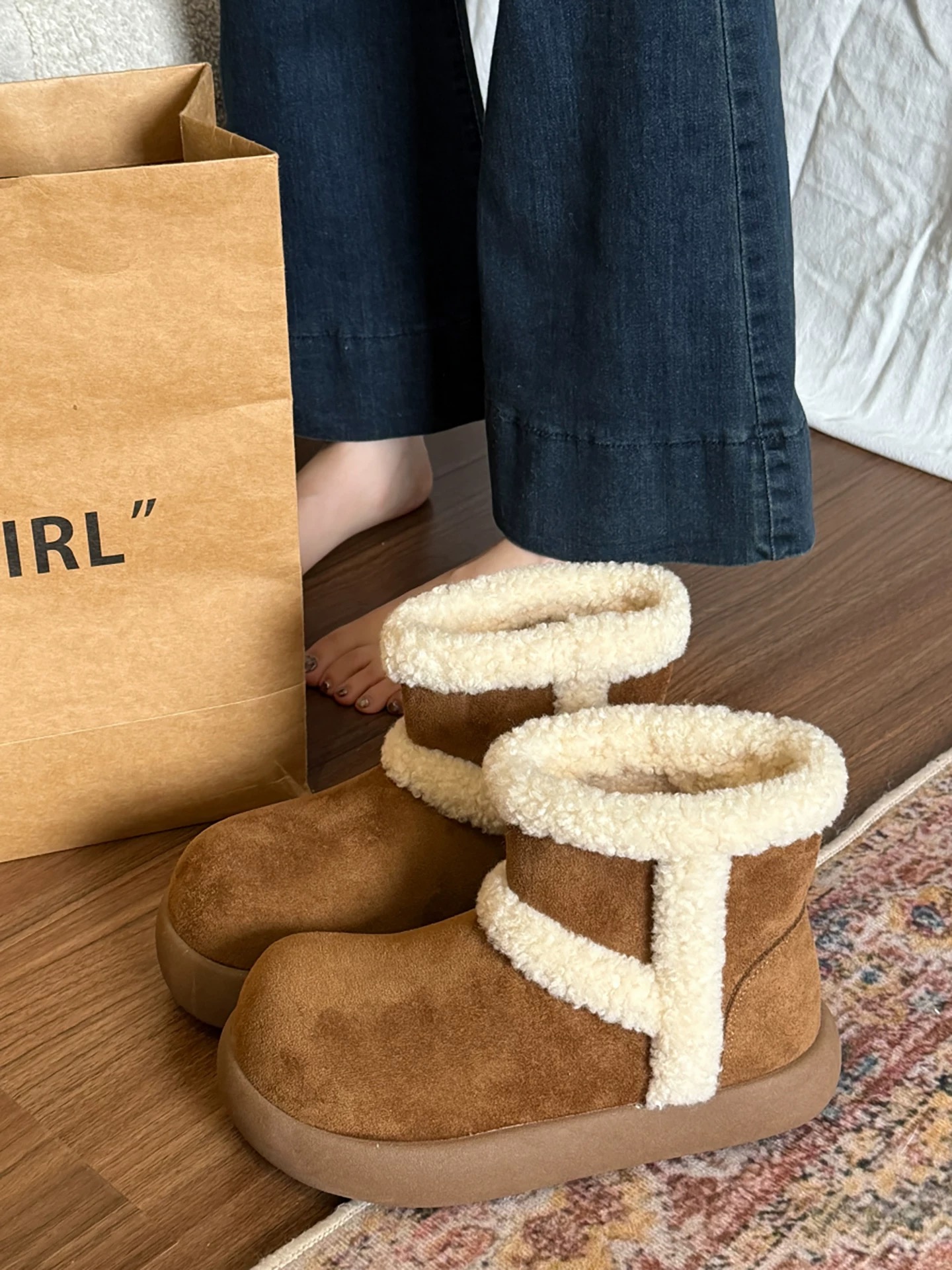 #新款 #厚底 #雪靴 #羊羔毛 #撞色 #防水 #保暖