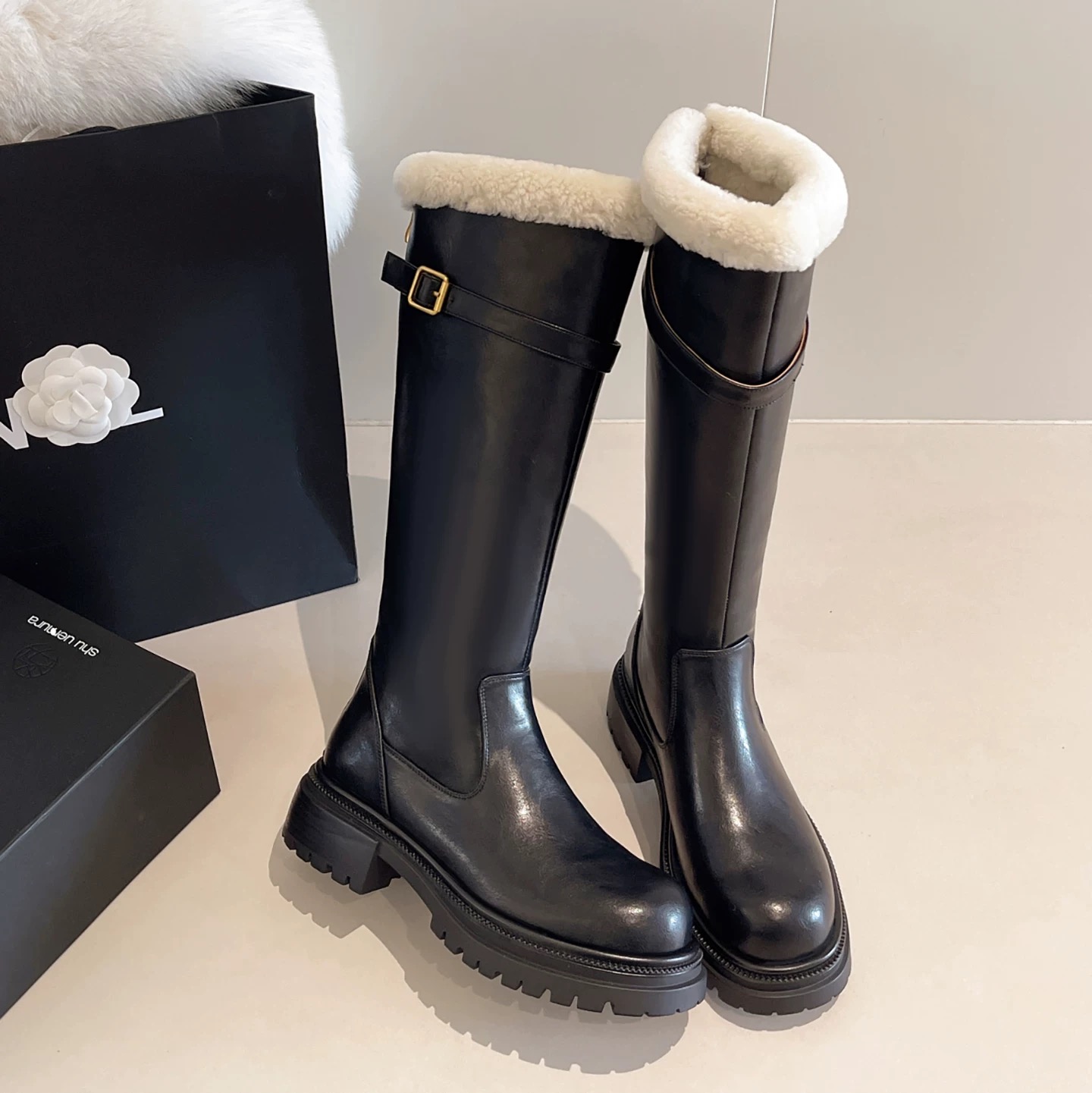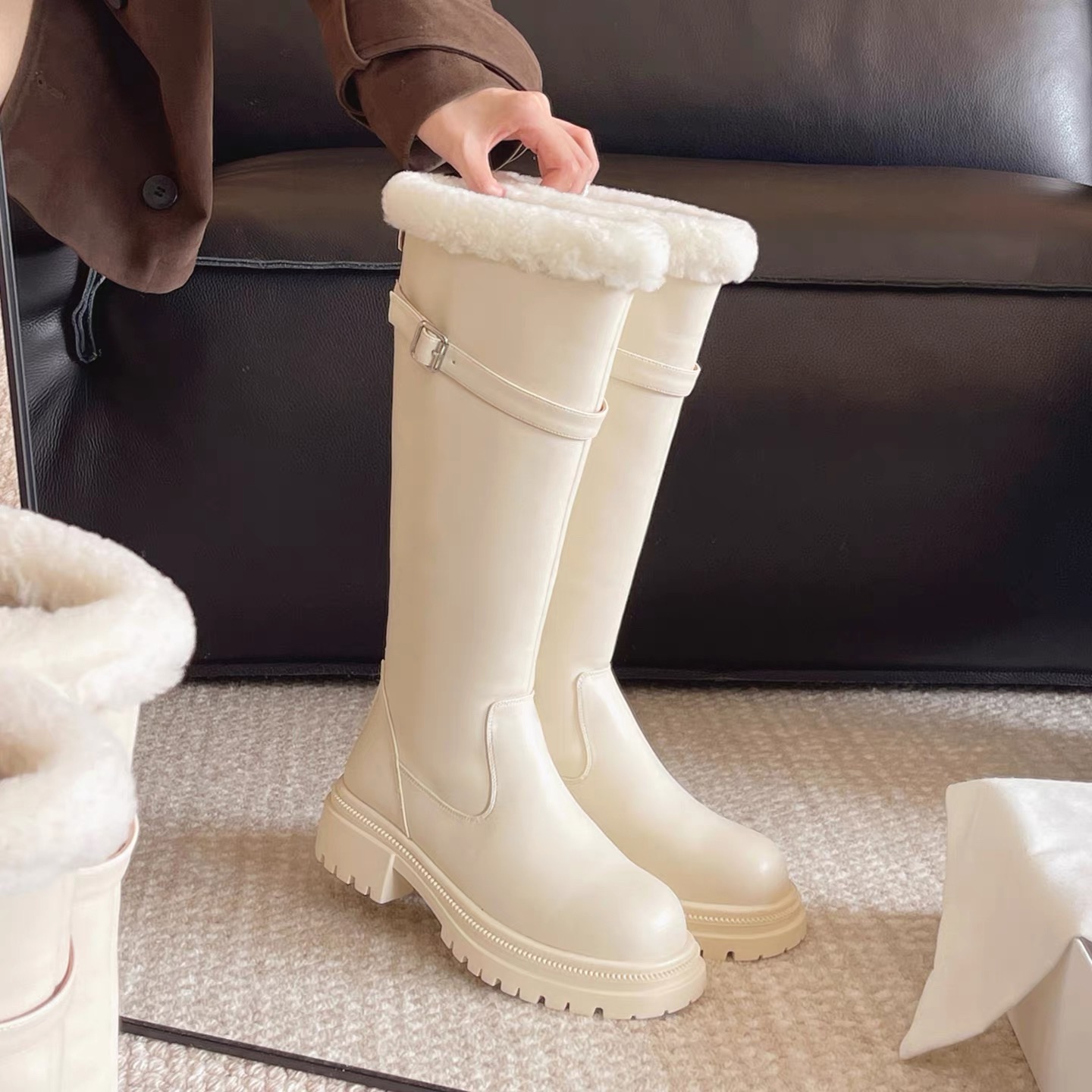 #新款 #厚底 #皮革 #英倫風 #羊羔絨 #顯瘦 #日常