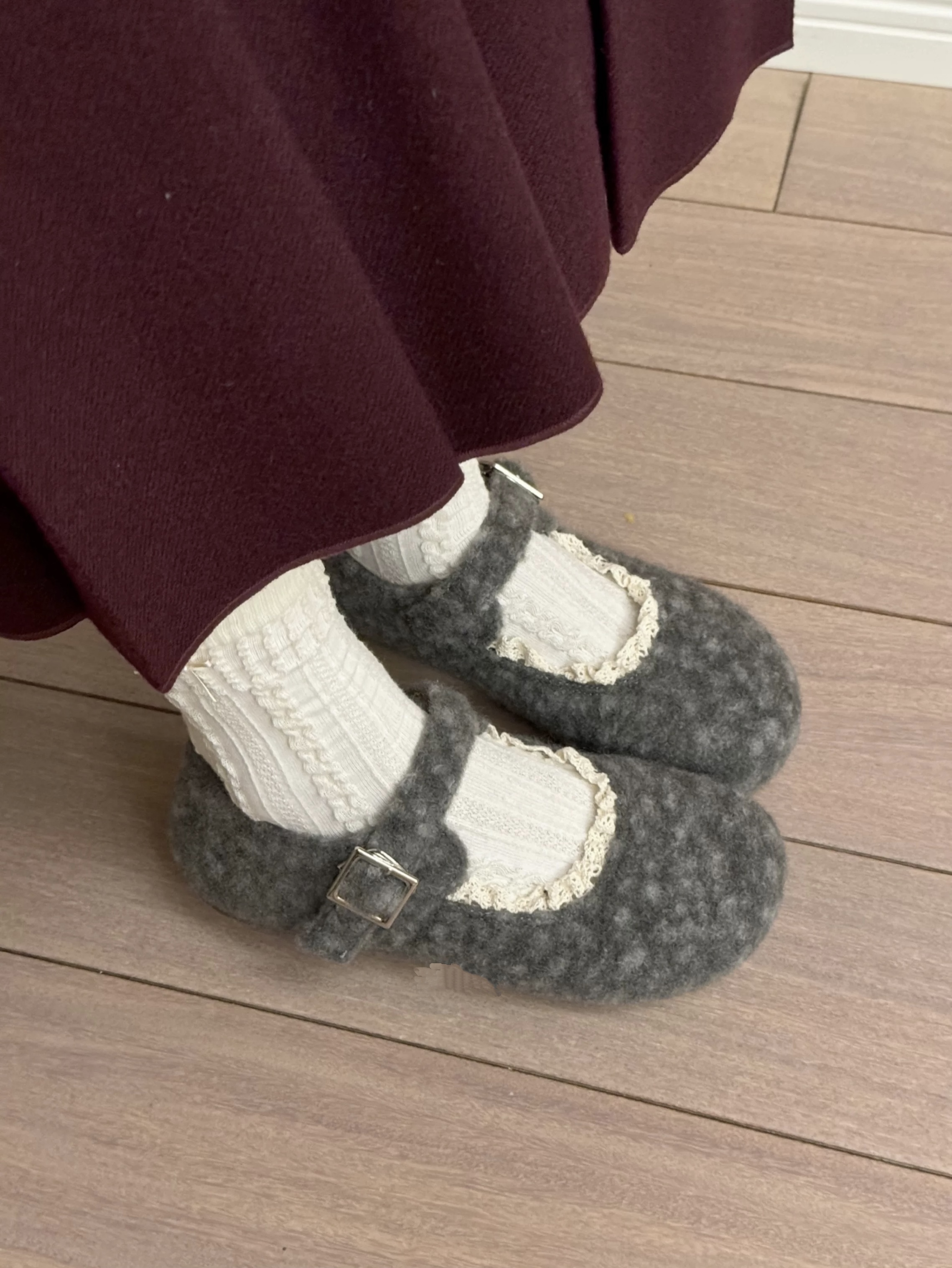 #新款 #平底 #羊羔絨 #蕾絲 #花邊 #氣質 #日常