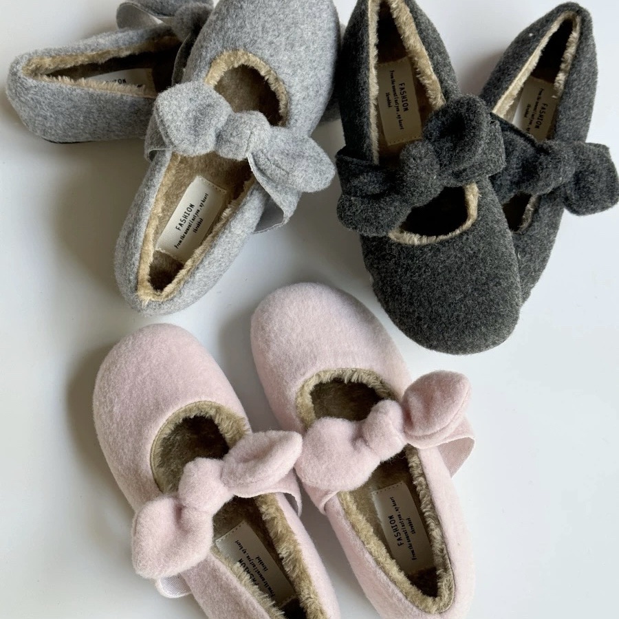 #新款 #平底 #毛絨 #內刷絨 #蝴蝶結 #可愛 #休閒