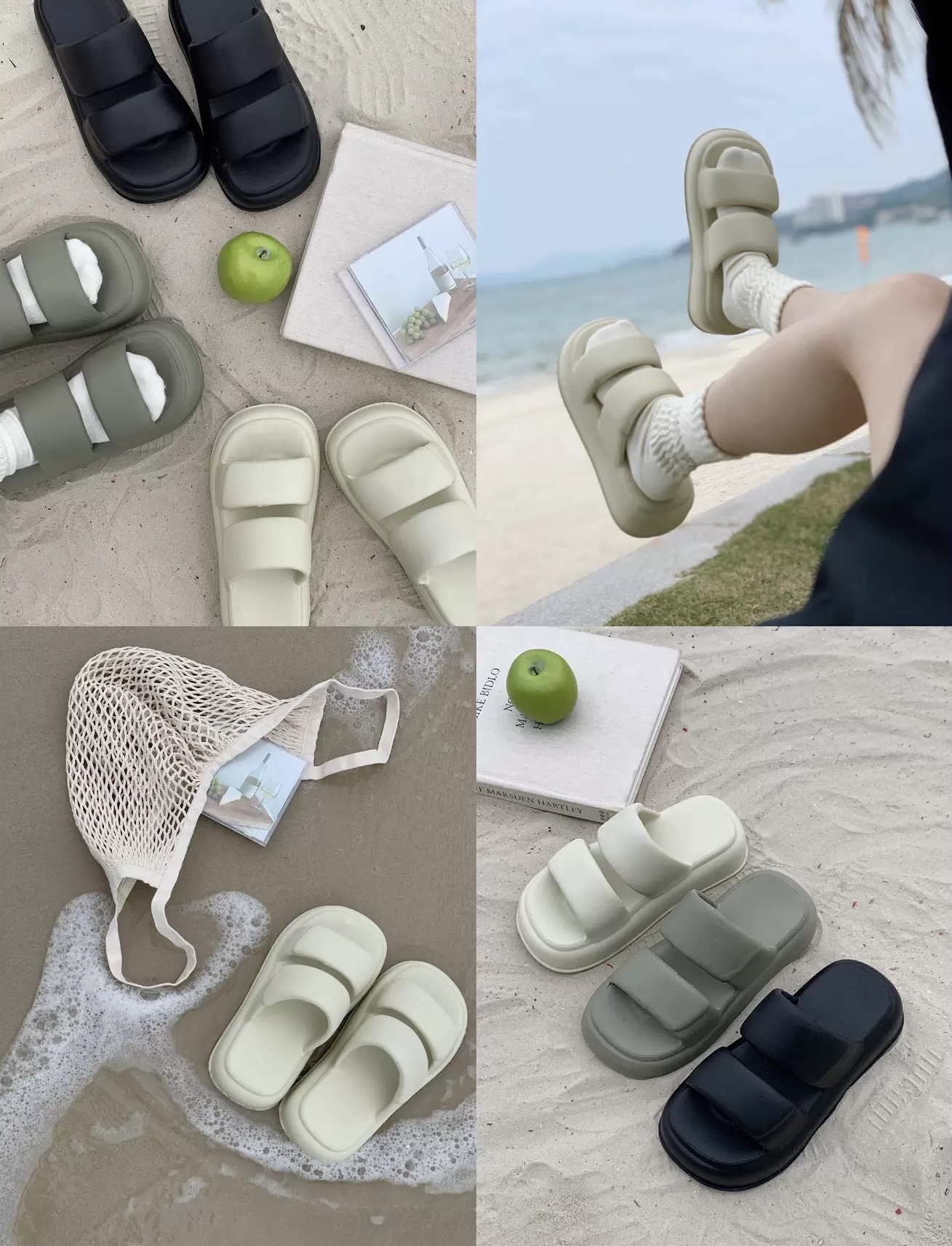 #新款 #厚底 #雙字帶 #海灘風 #拖鞋 #休閒 #日常