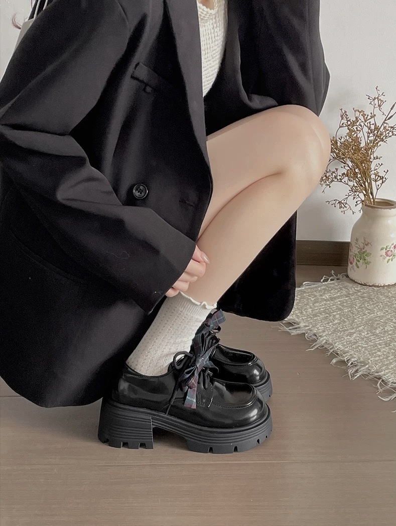 #新款 #厚底 #蝴蝶結 #英倫風 #格紋 #學生 #日常